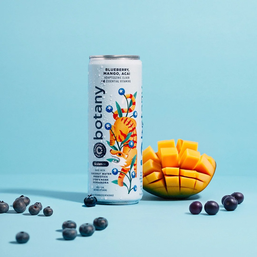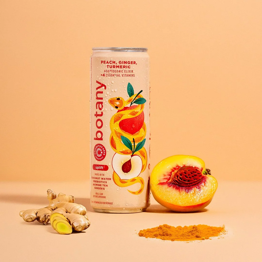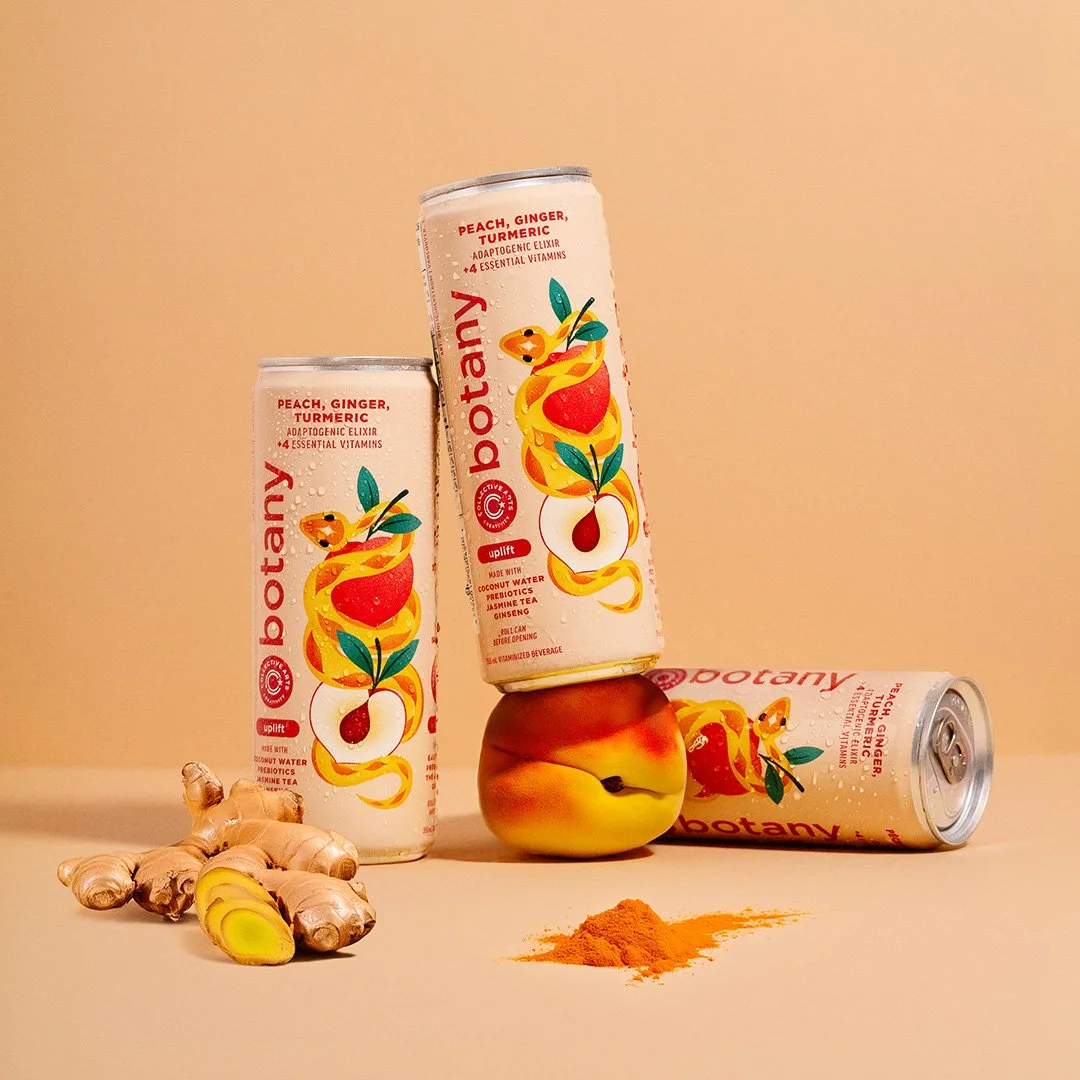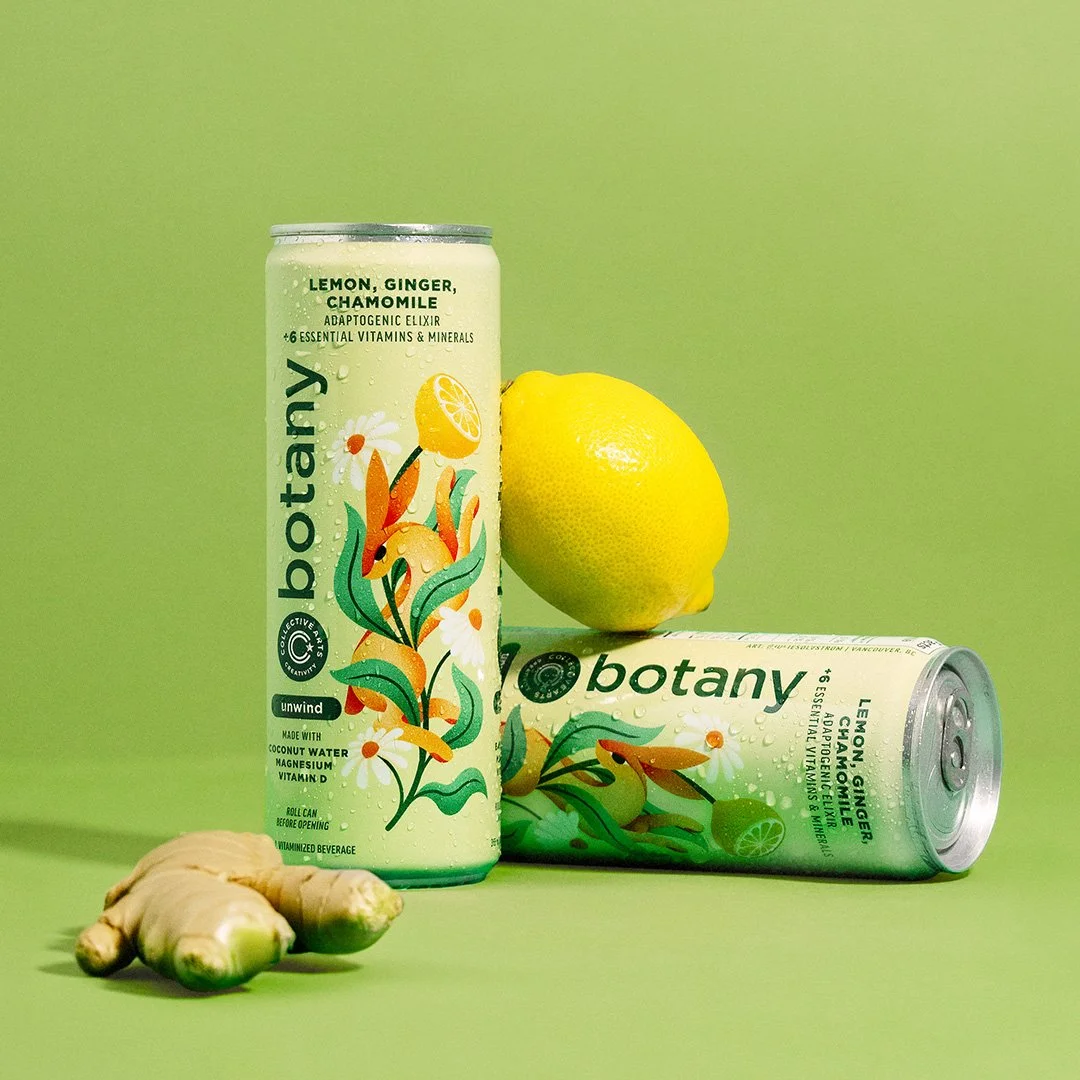 Packaging designs for Collective Arts' Botany Elixirs, a series of non-alcoholic beverages focused on health and wellness. Each drink comes with its own blend of ingredients, packed with essential vitamins and minerals. With every sip, Botany Elixirs will liberate your mind from daily stresses and guide you towards a calm state of inspired living.